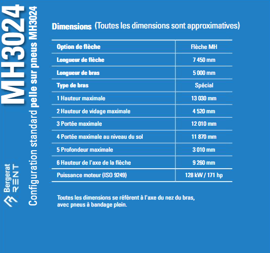 The MH3024 material handler is equipped with a powerful engine, advanced hydraulic systems and a comfortable cab for the operator. It offers great versatility thanks to its customisable accessories. It excels at loading bulk materials, sorting and handling heavy loads. Its compact design makes it agile on work sites.